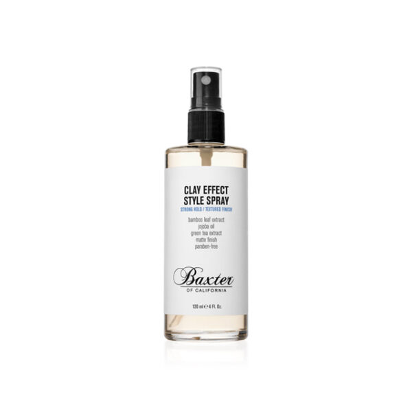 Spray do stylizacji włosów dla mężczyzn Baxter of California, o bogatej teksturze, mocnym chwycie i matowym wykończeniu.
